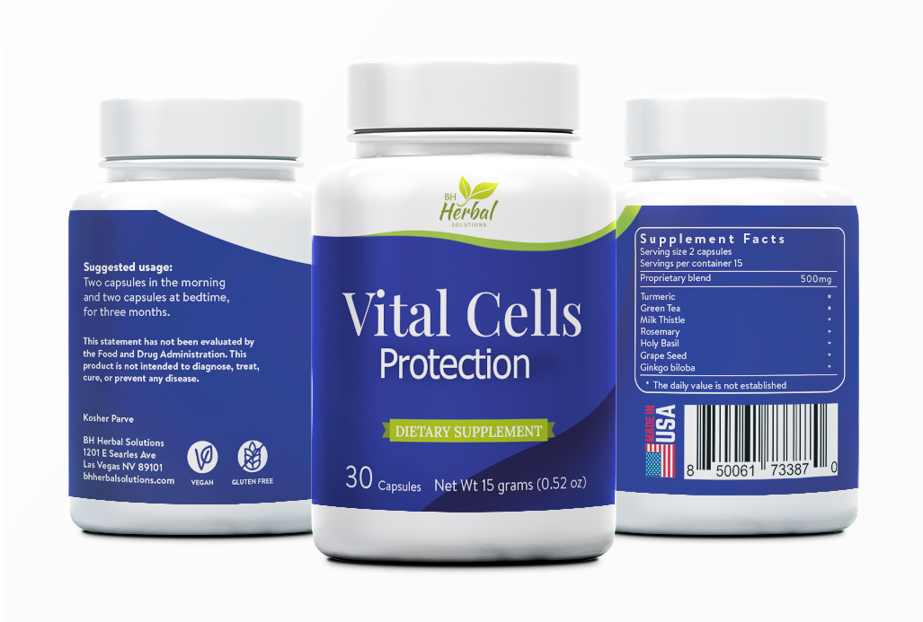 BH Herbal Solutions Vital Cells Protection is a natural herbal supplement designed to help minimize oxidative stress and protect your body at the cellular level. By supporting antioxidant defenses and reducing free radical damage, it promotes healthier cells, reduces inflammation, and supports overall vitality. With consistent use, it helps maintain long-term wellness and energy—naturally and effectively.